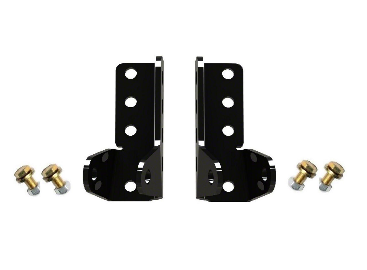 First-Rate Functionality. Enhance your vehicle's suspension system with the EVO Manufacturing Rear Shock Extension Set. Specifically designed for 2 to 3-inch lifted vehicles, this extension set is engineered to deliver reliable performance and enhanced ground clearance. By relocating the shock mounting and swaybar mounting hole, it provides more room for larger tires and improved off-road performance. With the additional ground clearance, you can tackle even the toughest terrains with ease.