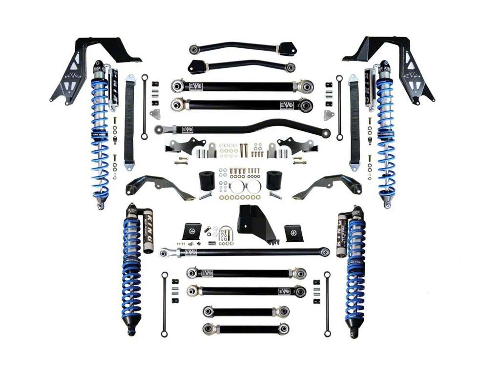 Advanced Suspension Upgrade. The EVO Manufacturing Enforcer PRO Suspension Lift Kit is a Stage 4 system designed to enhance the performance and off-road capabilities of your 2020-2023 3.0L EcoDiesel Jeep Gladiator JT. This comprehensive kit provides an adjustable 3 to 5-inch lift, allowing you to accommodate tires up to 36 inches while improving ground clearance and suspension articulation. With King shocks, sway bar end links, and trackbar relocation brackets, this lift kit delivers superior control and stability for both on-road and off-road driving.