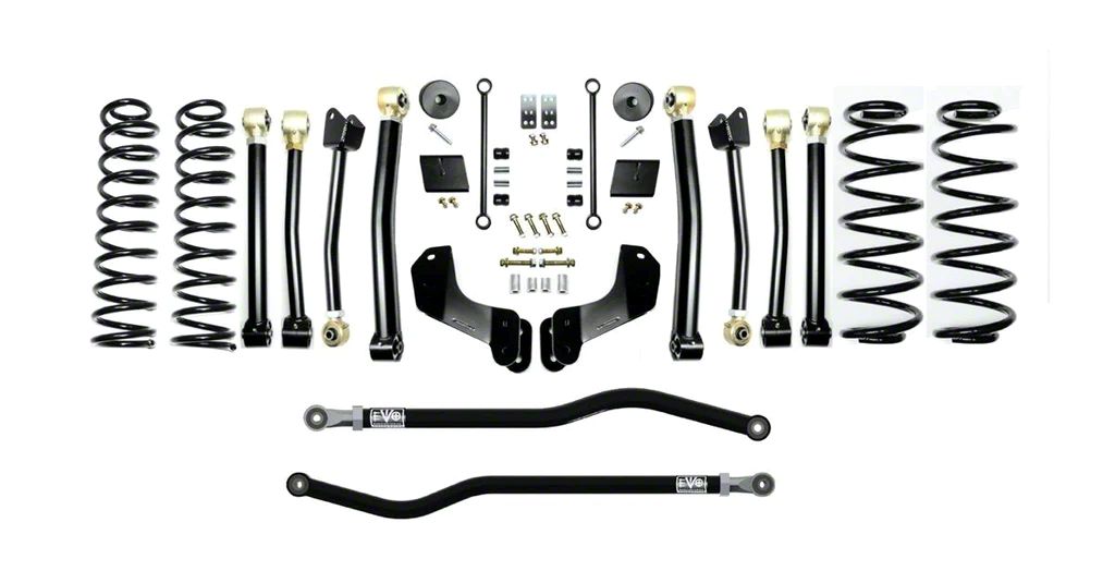Application. This EVO Manufacturing 2.50-Inch Enforcer Stage 4 Overland Suspension Lift Kit with Front and Rear Track Bars fits all 2018-2026 2.0L or 3.6L Jeep Wrangler JL Models (Excluding 4xe).
