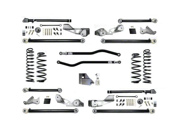 Application. This EVO Manufacturing Long Arm Suspension Kit fits 2018-2026 2.0L or 3.6L Jeep Wrangler JL 4-Door models, excluding 4xe models. It enhances suspension articulation, ride quality, and clearance, making it an excellent upgrade for off-road enthusiasts seeking superior performance.