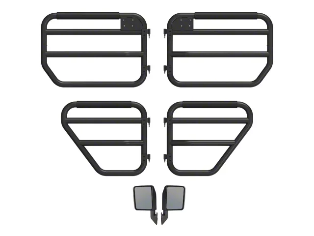 Application. This Exceed Fabrication SD1 Tube Doors with Mirrors; Front and Rear is designed to fit 2020-2025 Jeep Gladiator JT 4-Door models.