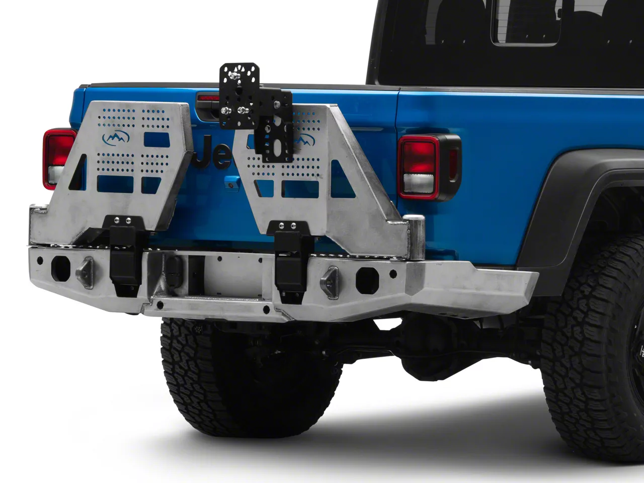 Application. This Expedition One Trail Series Rear Bumper with Dual Swing Out Tire Carrier in Bare Metal fits all 2020-2026 Jeep Gladiator JT models.