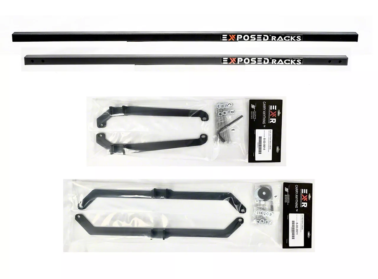 Heavy Duty Carbon SteelElectroplated and Powder CoatedxBars fit Soft Top or No TopSoft Top or No Top Conversion Kits sold separatelySoft Top & No Top fitments Rated for 5 Person Tent (RTT), 3 Large Kayaks, Awnings, Bikes, Overland Gear, etc.Recommended: EXR Kayak Basket (solid or click-in), EXR Kayak Carriers (click-in only), EXR Click-in Tent Brackets (click-in only, for any tent), EXR 270 Awning Brackets (B885) Patented Direct-To-Frame, NO DRILLING, attachments for Soft Top and No Top. Compatible with Sun Shades (Bimimi)Soft Top closes over installed crossbars when not in useSolid xBars have No square holes. Click-In xBars have Square holes for EXR Click-In AccessoriesTent, Gear, Kayak Carriers all CLICK IN and OUT with a push pin (Click-In xBars only). Hardware included (Stainless Steel for Hard Top, Zinc plated Steel for Soft / No Top)Amazing Weather Resistent Heavy Duty Carbon Steel, Electrocoated AND Powder Coated