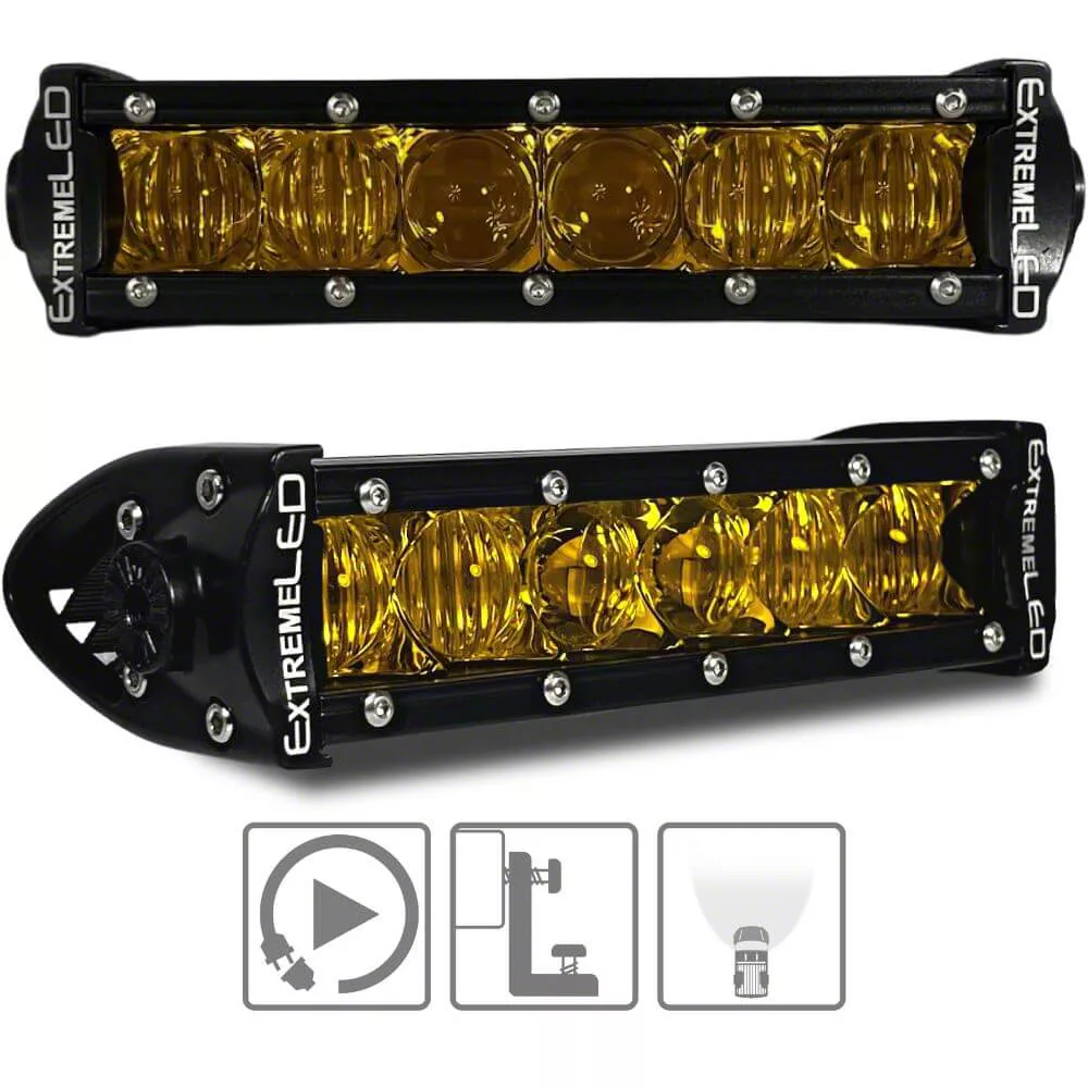 Amber LED Light Bar for Extreme Conditions. The Extreme LED 6-Inch X1 Series Single Row Amber LED Light Bar enhances visibility in all weather conditions, producing a 6300K amber light that reduces reflections from particles like dust, snow, and fog. This versatile light bar is ideal for use on bumpers or grilles, providing a powerful 2,400-lumen output with a slim, sleek design.