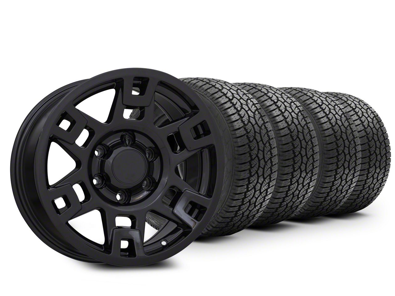 Mounted and Balanced Wheel and Tire Kit. This wheel and tire combo kit features (4) 17x8 TRD Style Gloss Black 6-Lug Wheels and (4) Atturo All-Terrain Trail Blade A/T 265/70R17 tires that have been put together into an easy to buy kit that arrives to your door already mounted and balanced ready to be installed on your vehicle.