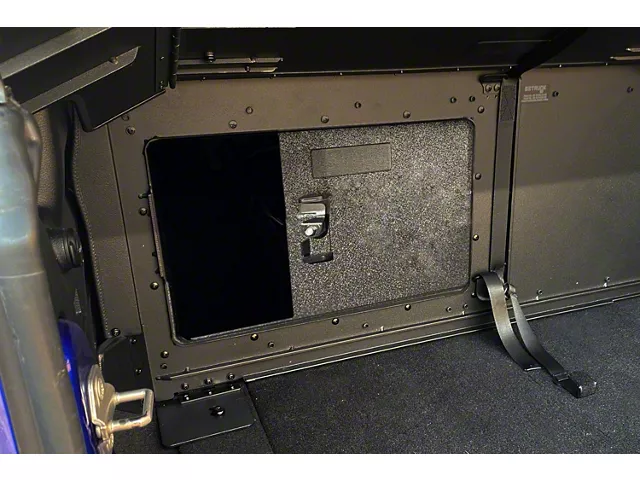 Enhanced Accessibility. The EZ 4x4 EZ-Rear Sliding Panel with Lock provides an interior door that facilitates easy access to the EZTRUNK, eliminating the need to walk around to the tailgate. This panel allows discreet storage of items from inside the vehicle and can be opened or closed within seconds.