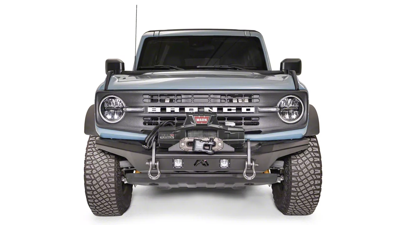 Application. The Fab Fours Stubby Winch Front Bumper with No Guard; Matte Black fits all 2021-2026 Ford Bronco models excluding Raptor models.