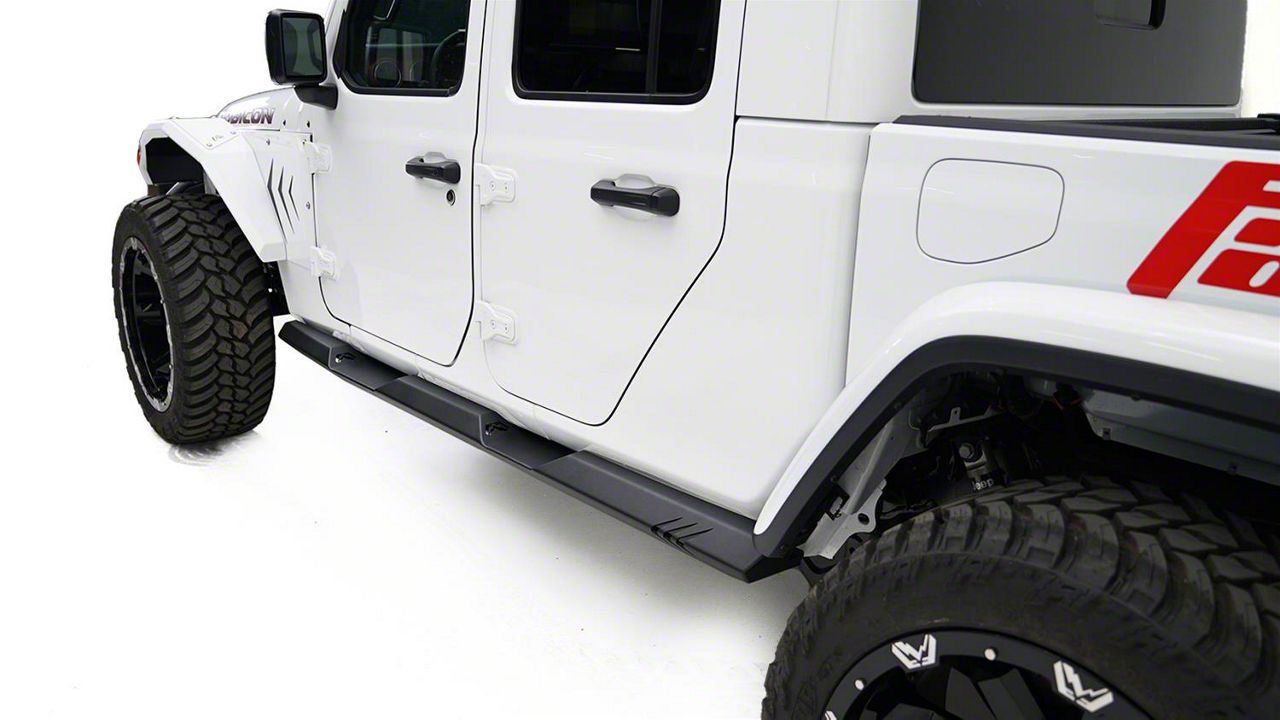 Application. These Fab Fours Rock Sliders in Bare Steel are designed for all 2020 to 2026 Jeep Gladiator JT models.