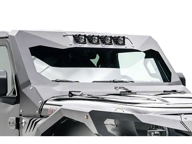 Application. The Fab Fours ViCowl Windshield Protector Cube Light Insert in Bare Steel is compatible with all 2020-2025 Jeep Gladiator JT models, excluding Mojaves.