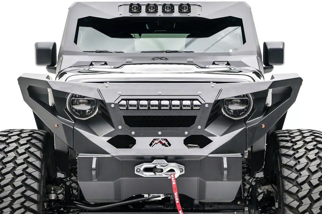 Added Lighting. For off-road enthusiasts, light your Jeep Wrangler's path with this Fab Fours Grumpers 20-Inch LED Light Bar Mount; Matte Black. Designed as an easy mounting solution, it is a quick and easy way to add a 20-inch light bar to your Fab Four Gumper. With its hard lines and strong geometric design, it adds a bold tough look to your vehicle.
