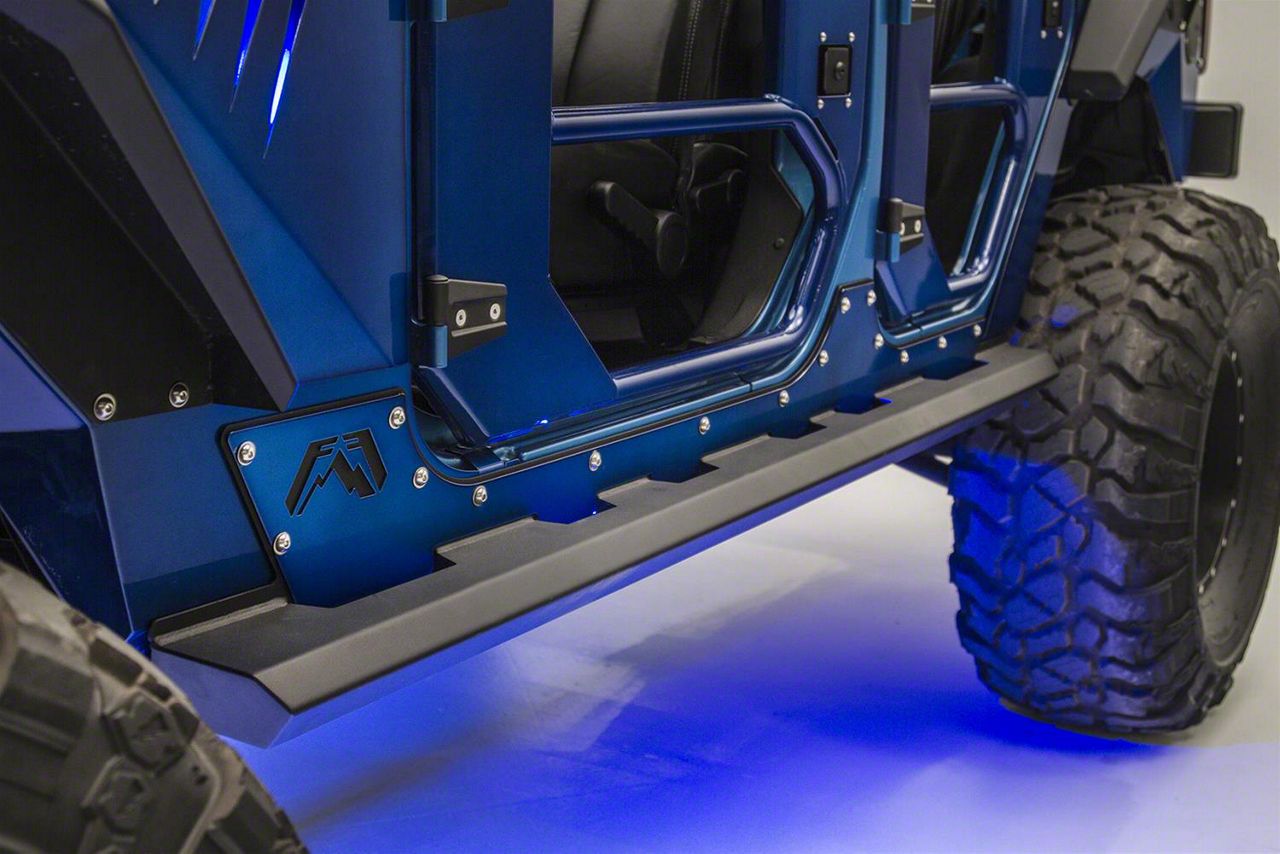 Application. These Fab Fours Rock Sliders; Matte Black are made to fit 2007-2018 Jeep Wrangler JK 4-Door models.