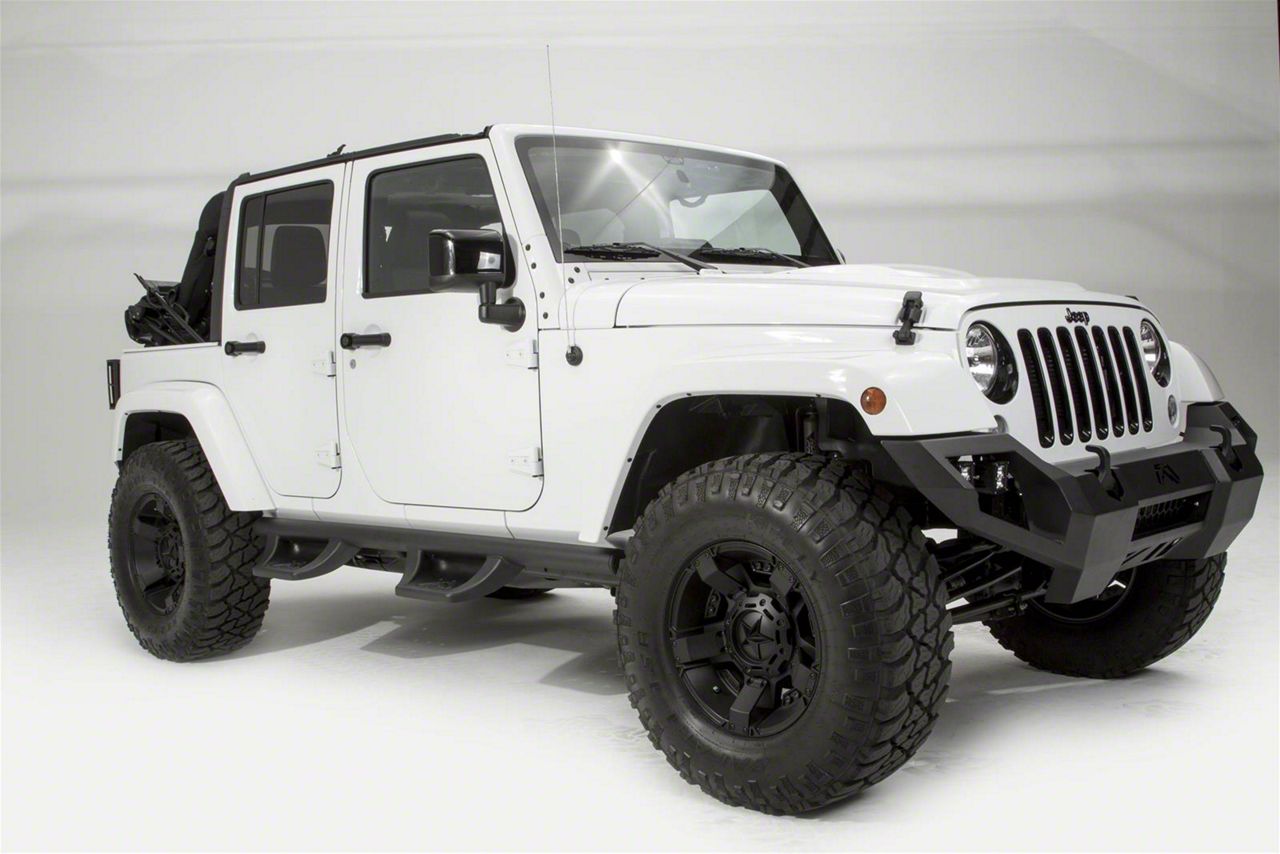 Description. Building on our reputation for the highest quality and design in the Truck and Jeep market, the Fab Fours Side Steps focuses on strength, durability and safety. The 10 in. large full width stomp pad is made from 13 gauge steel and is enclosed for your safety. Our embossed logo and drain holes provide traction for solid footing.