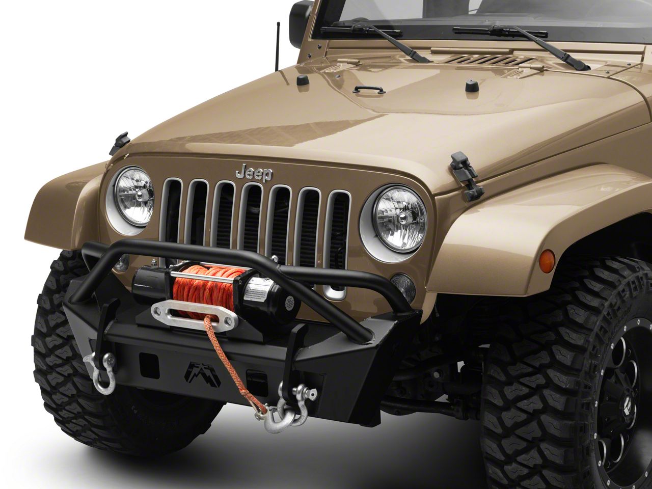 Solid, Reliable, and Long-Lasting. Your Jeep Wrangler JK is one heavy-duty machine that deserves an equally heavy-duty bumper. The Fab Fours Stubby Winch Front Bumper with Pre-Runner Guard in Matte Black is winch-compatible and can accept up to 16,000-pound winches. It features greater tire clearance to prevent rubbing and has provisions for D-Rings and auxiliary light installation.