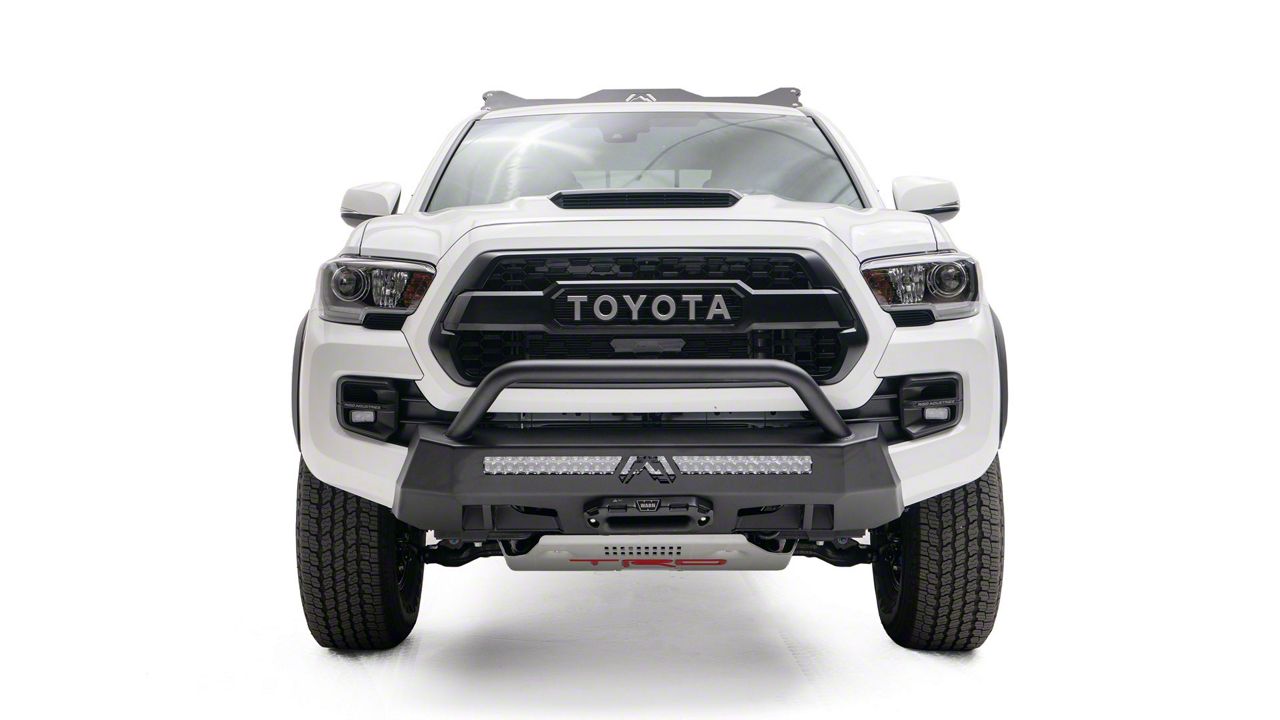 Application. The Fab Fours Hidden Winch Mount with Pre-Runner Guard in Matte Black fits all 2016 to 2023 Toyota Tacoma models.