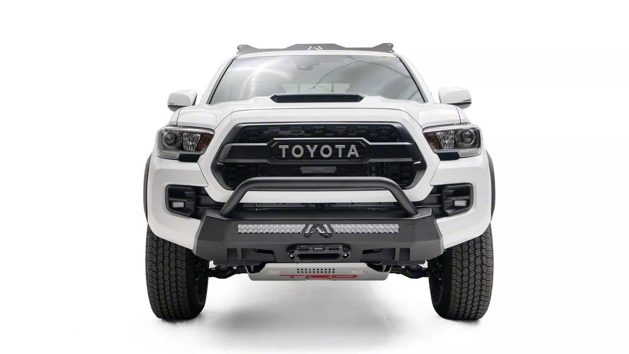 Small Frame, Big Function. Provide your Tacoma with superior functionality and leveled-up protection when you install this Fab Fours Hidden Winch Mount with Pre-Runner Guard in Matte Black. This winch mount bumper’s small frame form is similar to a stubby bumper but works by integrating into your front fascia. In doing so, this bumper improves your truck’s front-end protection while maintaining its rugged factory styling. This bumper also includes a hidden winch mount, allowing you to install a 10,000-pound winch such as the Warn Zeon 10. Meanwhile, its welded D-ring mounts keep you ready for any road or trail emergencies. Moreover, this assembly will work with Toyota’s Safety Sense Technology so you can keep on using this safety feature.