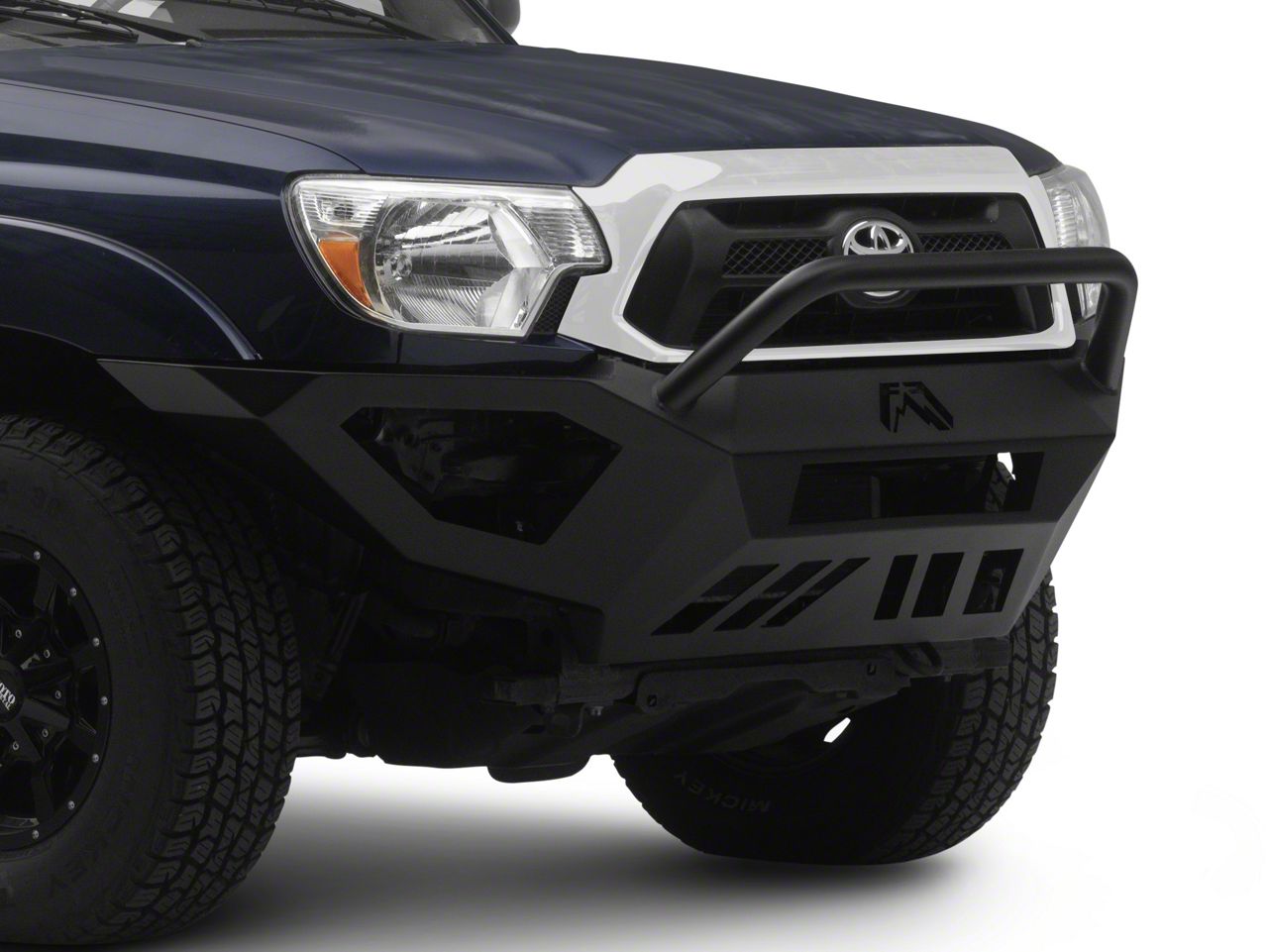Application. A Fab Fours Vengeance Front Bumper with Pre-Runner Guard is structured to accurately fit 2012-2015 Tacoma models.