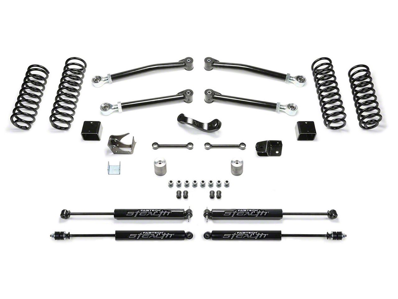 Application. The Fabtech 3-Inch Trail Lift Kit with Stealth Shocks is designed to be used on all Jeep Wrangler JK 4 door models released from 2007 to 2018.