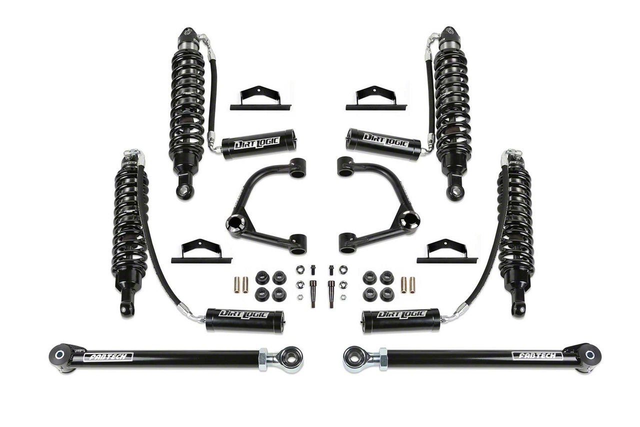 Application. The Fabtech 4-Inch Uniball Upper Control Arm Suspension Lift Kit with Front Dirt Logic 4.0 Reservoir Coil-Overs and Rear Dirt Logic 4.0 Reservoir Shocks fits 2021-2025 Bronco 4-Door models without Sasquatch Package.