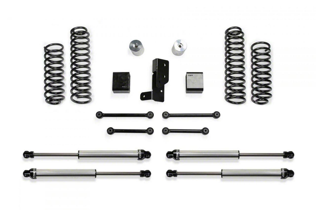 Description. The Sport system features coil springs that are a Dual Rate design allowing for long travel suspension use offroad with a smooth highway ride. The first stage of the spring provides a soft ride with the ability to extend for additional travel. The second stage is designed to handle the payload of the vehicle and address large impact absorption at higher speeds. The Dual Rate coil springs are corner specific to the JL. This keeps the vehicle level side to side while allowing for increased suspension travel. Four bump stops extensions utilize the factory bump stops for compliant cushioning at full compression. The extensions retain the stock down travel to eliminate over cycling of the suspension and driveline. The extended length front and rear sway bar links with urethane bushings re-position the bars to work within the factory operating planes. By extending the length of the links, it prevents the sway bar from going over center and creating bind at full extension travel. A heavy duty rear track bar bracket re-centers the axle while retaining the factory roll center of the vehicle with the increased ride height.