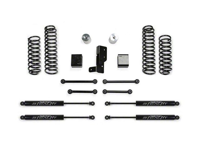 Superior Lift and Comfort. The Fabtech Sport Suspension Lift Kit is designed to enhance your Jeep Wrangler JL's performance and ride quality. With a 3-inch lift, this kit includes stealth shocks, coil springs, bump stop extensions, sway bar links, and a track bar bracket, providing a comprehensive suspension upgrade that ensures better handling and comfort on and off the road.