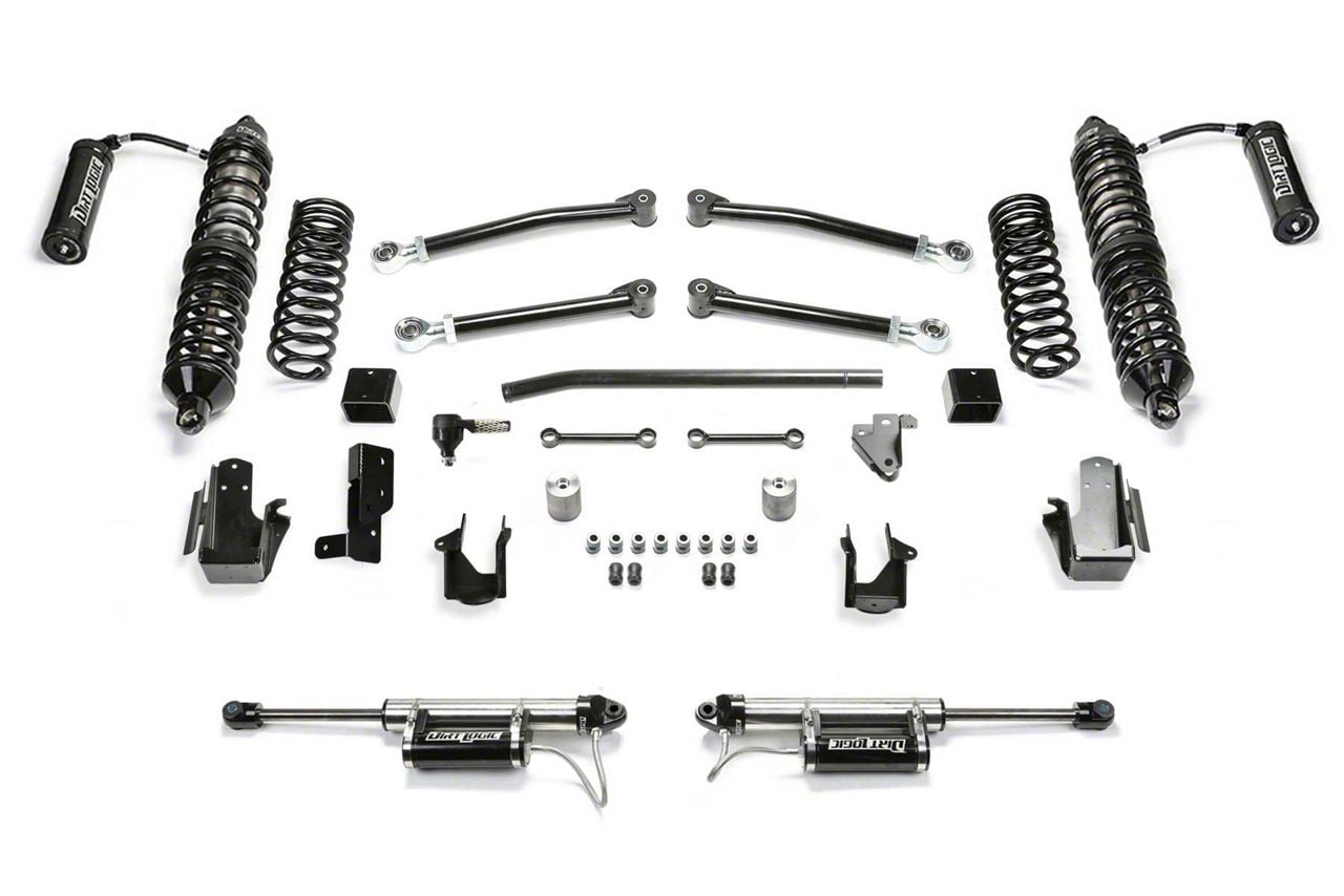 Ultimate Off-Road Suspension Upgrade. The Fabtech 5-Inch Trail Suspension Lift Kit provides a significant lift for your Jeep Wrangler JL, enhancing ground clearance and off-road capabilities. This comprehensive kit includes Front Dirt Logic 2.5 Reservoir Coil-Overs for superior damping and Rear Dirt Logic 2.25 Reservoir Shocks for improved performance on rugged terrain, offering a balanced and controlled ride.