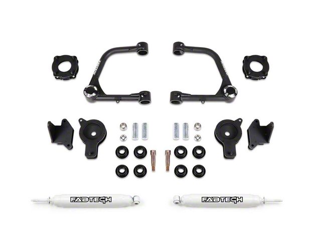 Increased Dampening Efficiency. This Fabtech 3-Inch Uniball Upper Control Arm Lift Kit with Rear Air Bag Spacers and Performance Shock will take your Toyota to a whole new level of efficiency. intended to improve your capability to travel by updating your stock suspension system with modern, off-road-ready control arms and premium shocks that improve the overall impact dampening capabilities of your suspension.