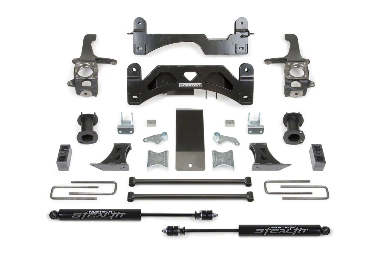 Features Rear Stealth Shocks. This 6-Inch Basic Lift System features (2) Rear Stealth Shocks. These shocks are Fabtech’s first all-black monotube shock absorbers engineered with a vehicle-specific valving and a full floating piston rod. It’s also designed to work in conjunction with oversized tires, delivering a more consistent ride as a result.