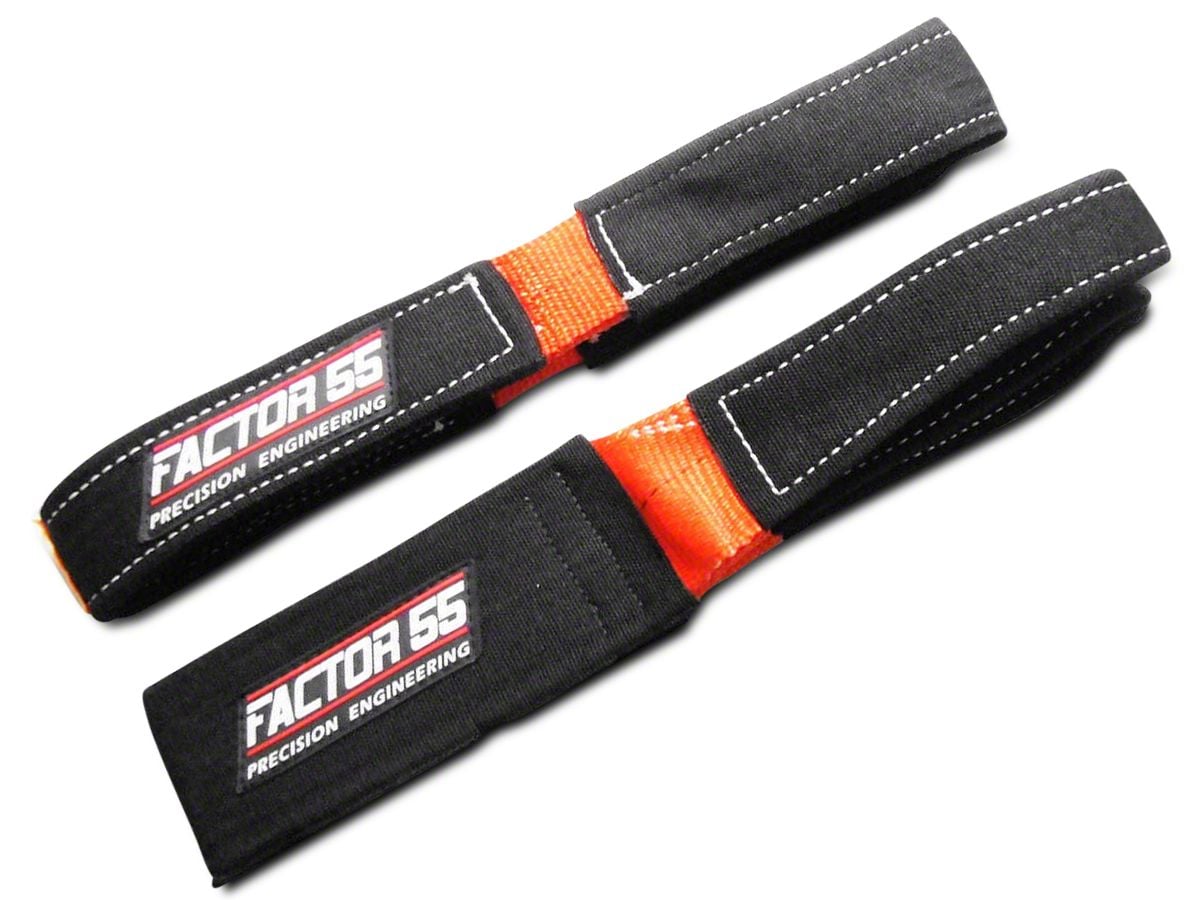 Versatile Strap. The Factory 55 Shorty Strap III isn't like other recovery/snatch straps. Versatility means you can use it in multiple recovery applications. It can be attached to vehicles that don't have recovery points or to make emergency repairs when off-road when bent components like tie rod ends need to be straightened. The Shorty Strap III can be used in three different configurations: straight, basket and choker. The strap's working load limits are printed on the strap for each configuration.