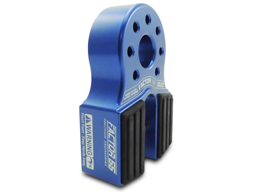 High Quality Materials and Construction. The Factor 55 FlatLink is made from precision-machined 6000-series aluminum. The quality of materials and manufacturing provide a 16,000-lb. max load rating with a 40,000-lb. or greater ultimate failure rating. The ring removal for the shear pin is a simple snap ring making operation easy and convenient. The EPDM rubber guard protects allow fairleads and cushions the stowing of the line prolonging the life of both the line and the FlatLink.