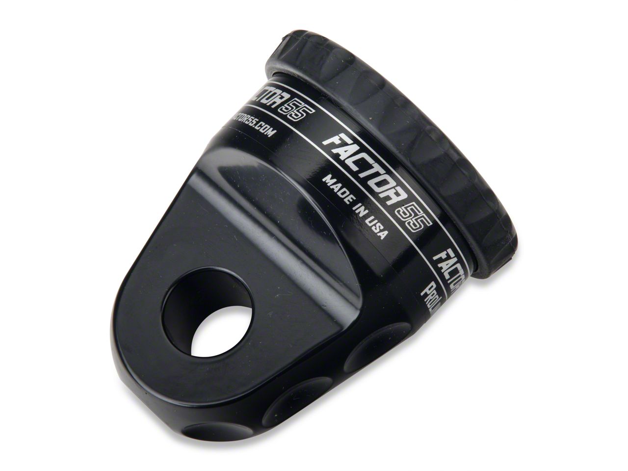 Replace conventional winch hooks with the new safer, stronger, and smarter Factor 55 ProLink shackle mount. Factor 55 introduces the new ProLink shackle mount for winch cables and synthetic ropes. Engineered and machined in the USA from lightweight billet 6061 aluminum, the ProLink provides a safe means to easily attach a standard 3/4" screw pin shackle to existing winch cable and rope eyes The cable or rope eye is captured into the body of the ProLink by a removable oversized 5/8" double shear pin. The front of the ProLink provides the precision shackle mounting hole and massive 1.2" thick mounting tab. The ProLink is compatible with both Hawse and Roller fairleads and snugs neatly against both versions.