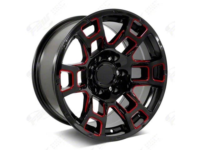 Factory Style Wheels 2021 4TR Pro Style Gloss Black Red Milled 6-Lug Wheel; 22x9; 0mm Offset is a wheel that stands out with its refined design and precision finish, making it a perfect match for vehicles that demand a sophisticated yet aggressive appearance.