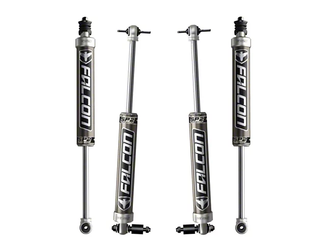 Enhanced Ride and Control. The Falcon Shocks SP2 2.1 Monotube Front and Rear Shocks are designed for Jeep Wrangler JK models with a 1.50 to 2.50-inch lift, enhancing ride quality and comfort. These shocks increase handling and stability, whether on smooth pavement or rough terrain, offering race-inspired performance with SP2 mode adjustments that provide both Soft and Performance settings.