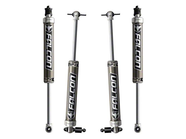 Application. The Falcon Shocks SP2 2.1 Monotube Front and Rear Shocks for 3 to 3.50-Inch Lift fit 2007-2018 Jeep Wrangler JK 2-Door models.
