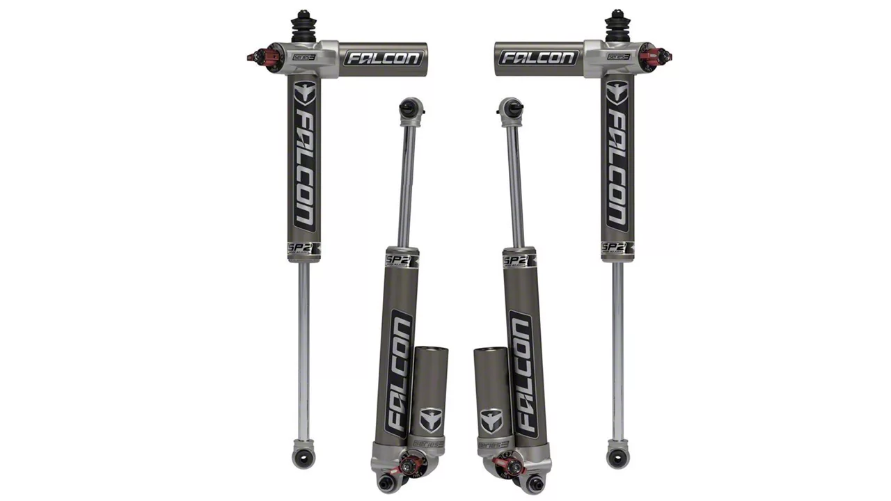 Installation. Putting these Falcon Shocks SP2 3.3 Fast Adjust Piggyback Front and Rear Shocks for 1.50 to 2.50-Inch Lift on your ride is easy and requires no drilling.