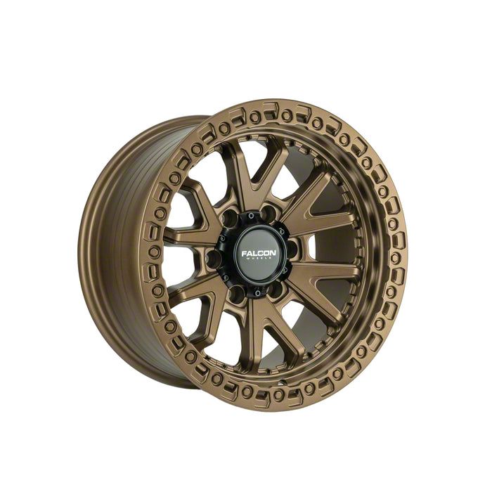 Falcon Wheels TC3 Series Matte Bronze 6-Lug Wheel; 17x9; -10mm Offset This wheel features sophisticated styling that enhances your vehicle's appearance with refined design elements and premium craftsmanship. Its distinctive aesthetic provides an upgraded look that complements a wide range of vehicles. The thoughtful engineering ensures a proper fit while delivering lasting visual appeal.