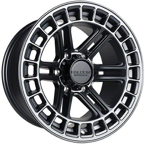 Falcon Wheels T5 Series Full Matte Gunmetal 6-Lug Wheel; 17x9; -12mm Offset exudes sophistication with its finish, offering a sleek and modern appeal to any vehicle it adorns. The design is meticulously crafted to enhance the aesthetic of your vehicle, giving it a distinctive and upscale look. Perfect for those seeking to elevate their vehicle's style, this wheel blends seamlessly with both contemporary and classic vehicle designs, making it a versatile choice for a wide range of vehicles. Its robust construction ensures durability, making it a reliable choice for drivers who value both style and quality.