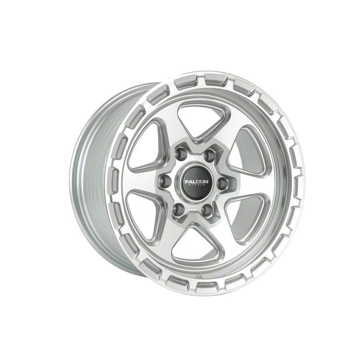 Falcon Wheels TC2 Series Silver Machined Face 6-Lug Wheel; 17x9; -12mm Offset This wheel features sophisticated styling that enhances your vehicle's appearance with refined design elements and premium craftsmanship. Its distinctive aesthetic provides an upgraded look that complements a wide range of vehicles. The thoughtful engineering ensures a proper fit while delivering lasting visual appeal.