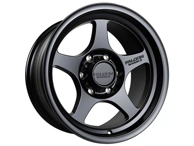Falcon Wheels T2 Series Full Matte Black 6-Lug Wheel; 17x9; -12mm Offset exudes a captivating aesthetic appeal that seamlessly complements various vehicle styles. The craftsmanship of Falcon Wheels ensures a robust and premium feel, making it a standout choice for discerning drivers.