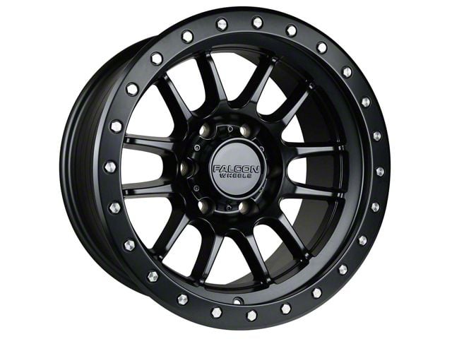 Falcon Wheels T7 Series Matte Black with Matte Black Ring 6-Lug Wheel; 17x9; -12mm Offset - Enhance your vehicle's style with the Falcon Wheels wheel. This wheel's distinctive design and finish complement your vehicle's aesthetics, making a bold statement. It's crafted to accentuate the unique character of your car, emphasizing a premium and robust appeal.