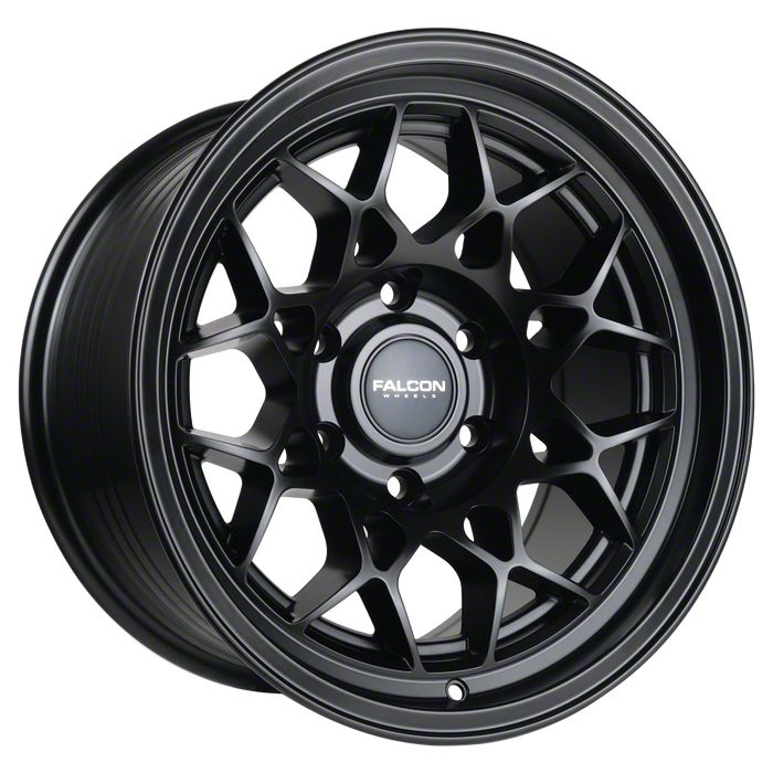 This 17x9 Falcon Wheels TX3 EVO Series Full Matte Black 6-Lug Wheel; 17x9; -12mm Offset is completed in a high-quality matte black finish that will make others green with envy. There is a durable clear coat that looks great and withstands the rigors of daily driving.