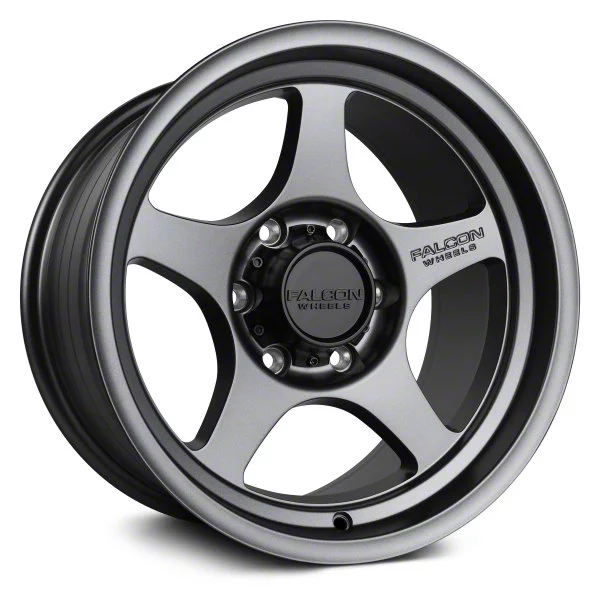 Falcon Wheels T2 Series Full Matte Gunmetal Wheel; 17x9. Enhance your vehicle's look with the Falcon Wheels T2 Series Full Matte Gunmetal Wheel. This premium wheel adds a touch of elegance and class to your vehicle, complementing its sophisticated aesthetic.