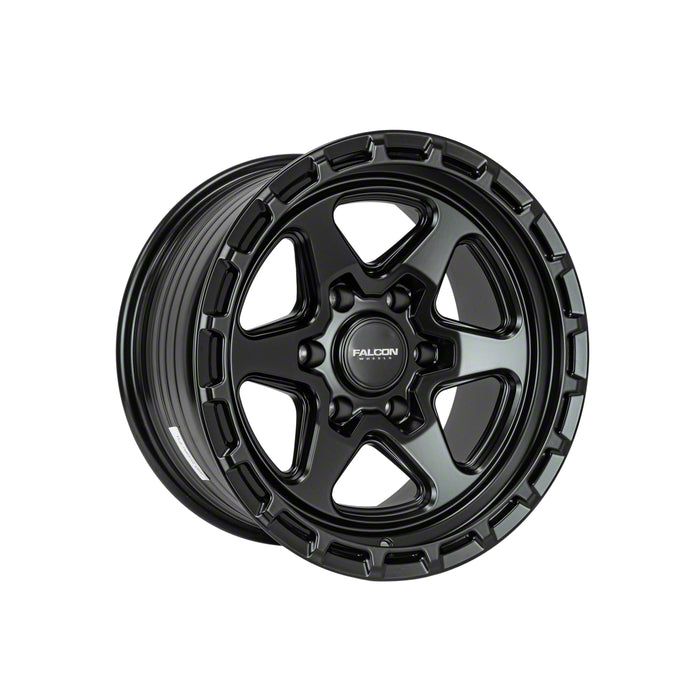 Falcon Wheels TC2 Series Matte Black 6-Lug Wheel; 17x9; -12mm Offset This wheel features sophisticated styling that enhances your vehicle's appearance with refined design elements and premium craftsmanship. Its distinctive aesthetic provides an upgraded look that complements a wide range of vehicles. The thoughtful engineering ensures a proper fit while delivering lasting visual appeal.