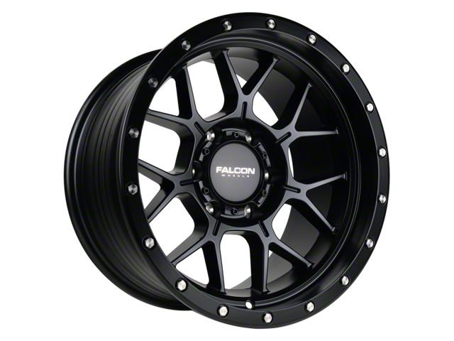 Falcon Wheels TX Titan Series Full Matte Black 6-Lug Wheel; 17x9; -12mm Offset has a unique aesthetic appeal, combining a rugged finish with a sleek design. This striking design enhances the visual impact of any vehicle, making it a standout on the road. Perfect for those seeking a balance of toughness and style.