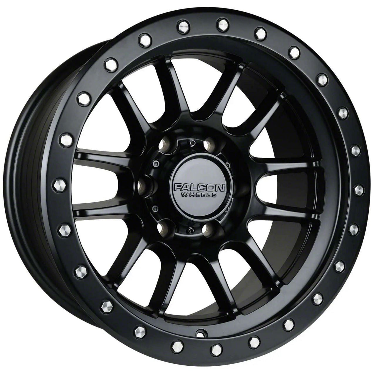 Falcon Wheels T7 Series Matte Black with Matte Black Ring 6-Lug Wheel; 17x9; 0mm Offset - Elevate your vehicle's style with this wheel's striking design. Reflecting the Falcon Wheels' commitment to quality, it promises to add a touch of elegance and a strong character to your ride. Perfect for those seeking to make an impression without saying a word.