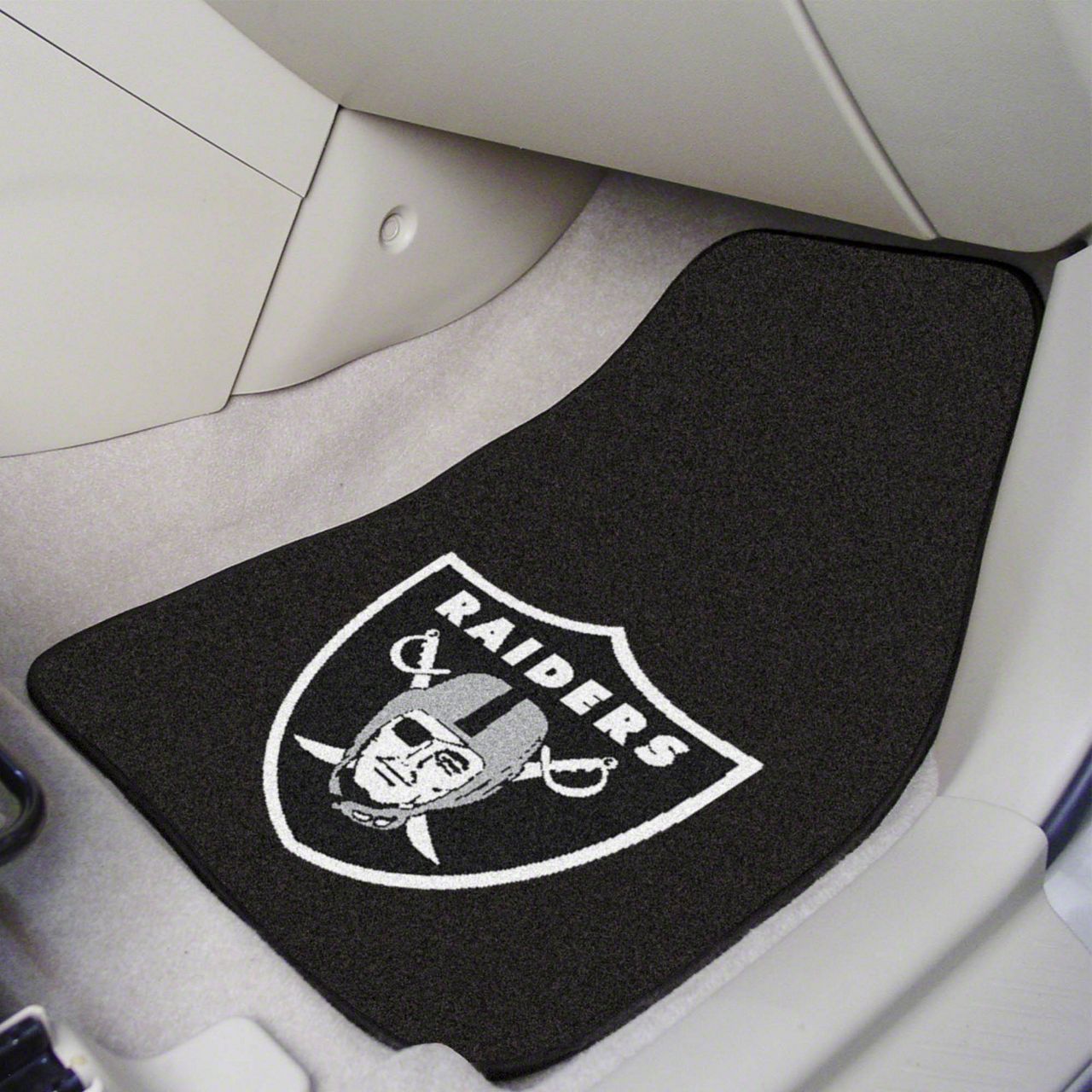 Description. Front Car Mats; 2-Pc Carpet Car Mat Set; Nfl; Las Vegas Raiders; 17"X27"