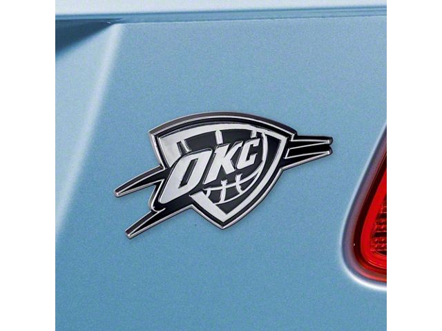 Style and Quality. Show off your love for the Oklahoma City Thunder with this beautifully designed Emblem. The emblem features the official Thunder logo, making it the perfect accessory for any fan. Made with high-quality chrome, it is not only durable but also adds a sleek and polished look to your vehicle. The molded 3D team logo is a standout feature that will catch the eye of fellow Thunder fans and sports enthusiasts alike. Thanks to its durable construction, this emblem is built to last. It will withstand harsh weather conditions, including rain, sun, and wind, without fading or deteriorating over time. You can be confident that the Oklahoma City Thunder Emblem will remain in great condition for years to come.