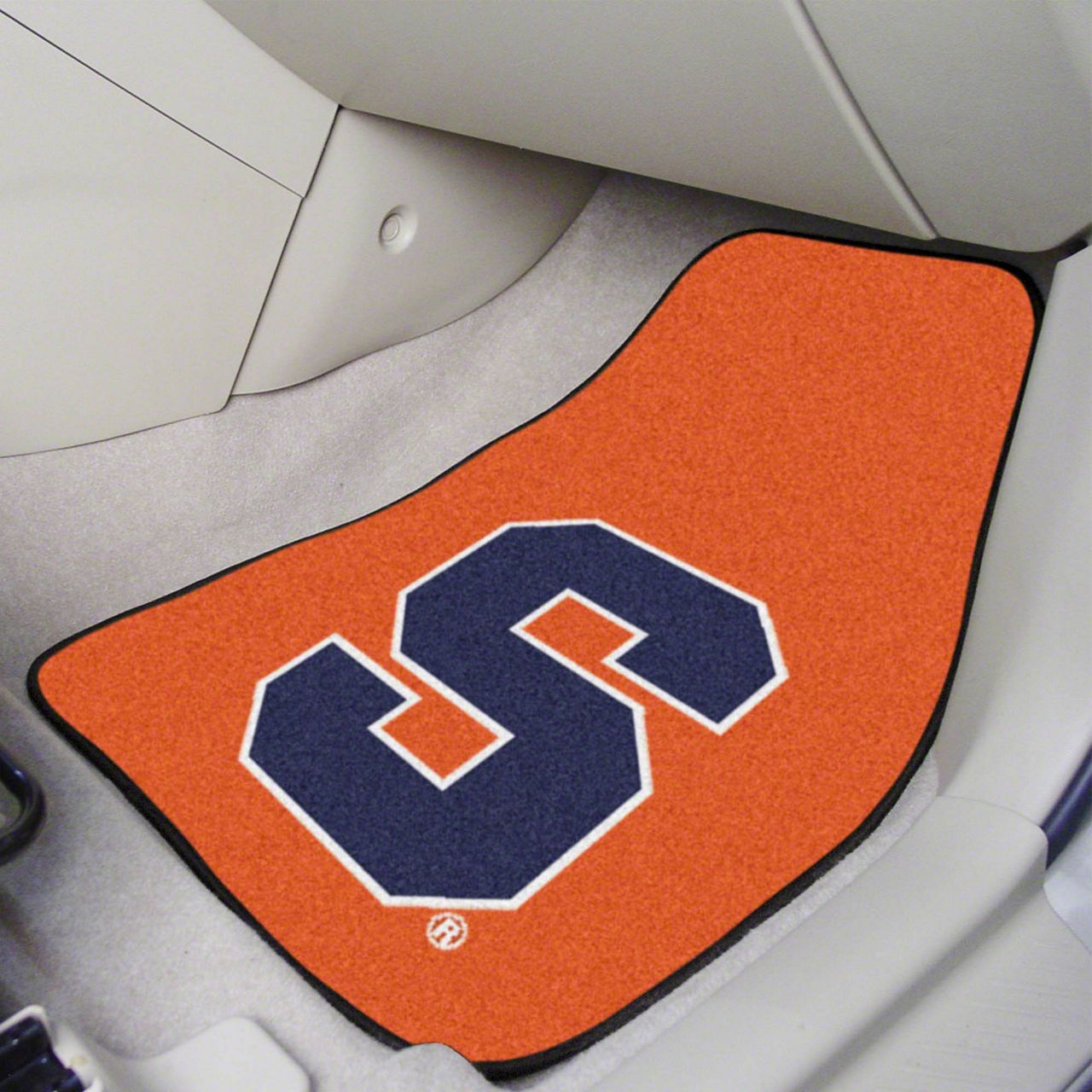Description. Front Car Mats; 2-Pc Carpet Car Mat Set; Syracuse University; 17"X27"