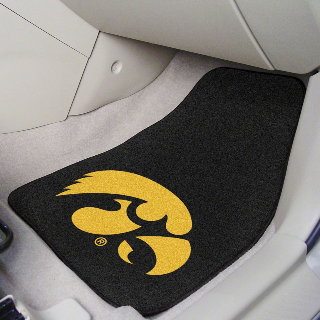 Carpet Front Floor Mats with University of Iowa Logo; Black (Universal; Some Adaptation May Be Required)
