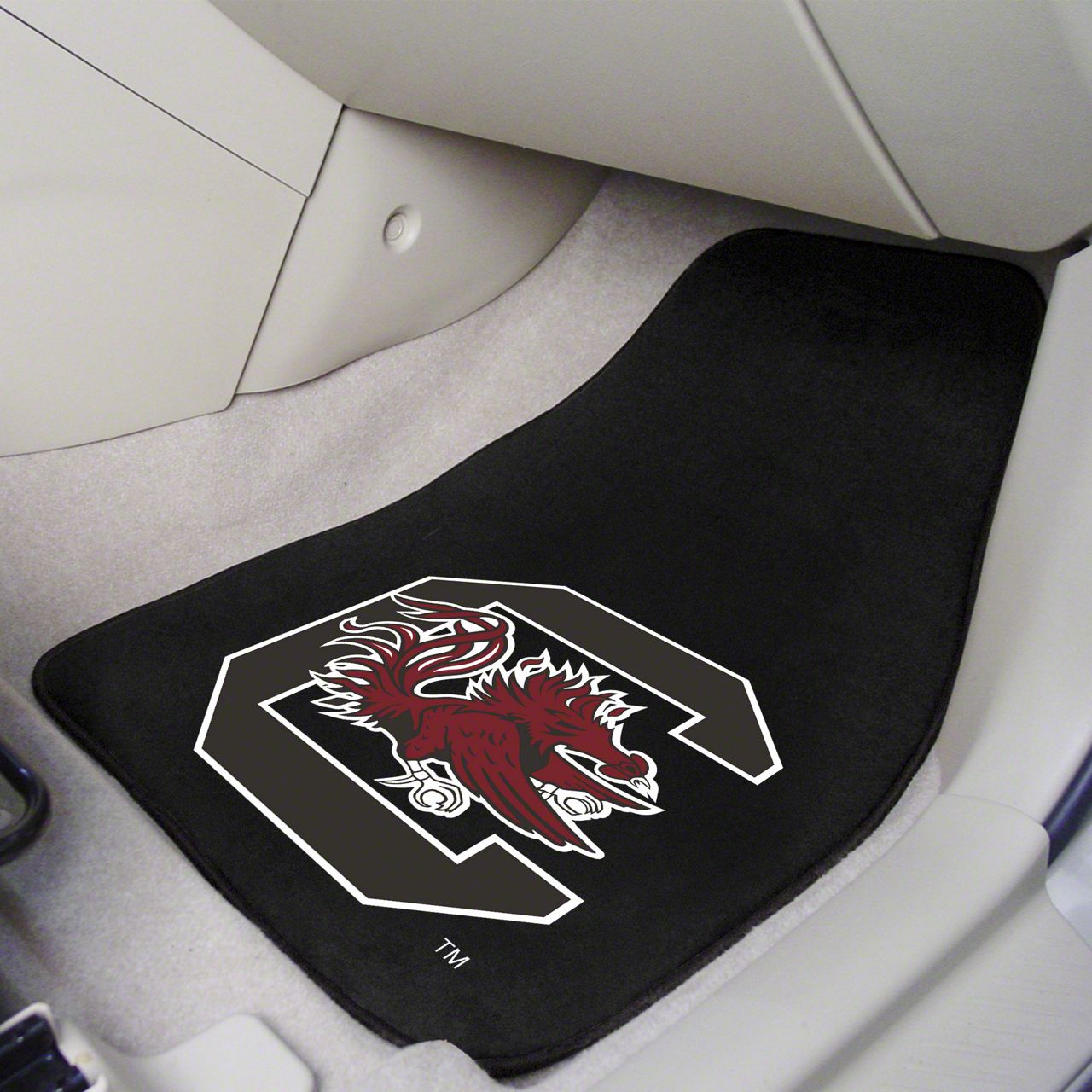 Carpet Front Floor Mats with University of South Carolina Logo; Black (Universal; Some Adaptation May Be Required)