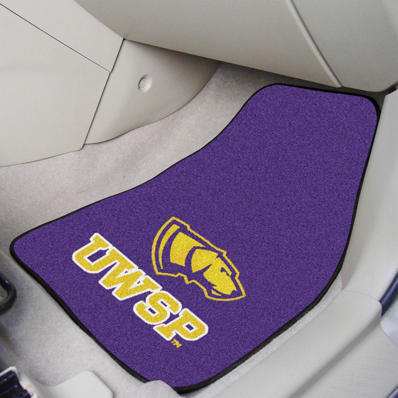 Description. Front Car Mats; 2-Pc Carpet Car Mat Set; University Of Wisconsin-Stevens Point; 17"X27"